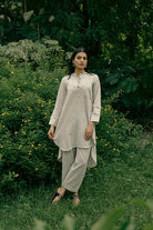 Greet the day in the Mandvi Savar Kurta Set, where the warm embrace of the sunrise meets timeless style. This piece, created from the finest Kala Cotton in a custom one-of-a-kind stripe weave, radiates with the hues of dawn along the Mandvi shores. Tailored for elegance and comfort, it is perfect for morning affairs or leisurely evenings, offering a luxurious feel with every wear.